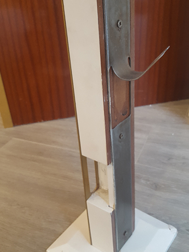Esta gran debilidad se puede mejorar a través de cercos blindados reforzados. Este cerco está compuesto por un perfil de acero de 70 x 30 x 2 mm de espesor, que abraza los dos largueros y el cabecero, formando una sola pieza. A este perfil le atornillamos, en contra, bien un cerco de madera, bien de DM, según la necesidad. De esta forma, mejoramos la seguridad de la puerta blindada. En cualquier caso, que, pese al refuerzo, el cerco blindado reforzado no convierte nuestra puerta ni en acorazada ni, como en ocasiones se dice, en semi-acorazada.