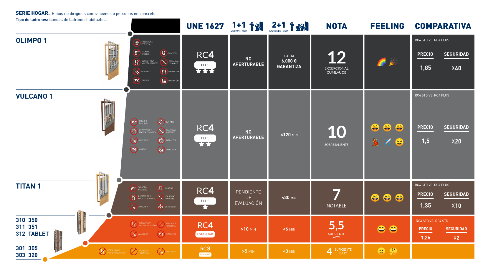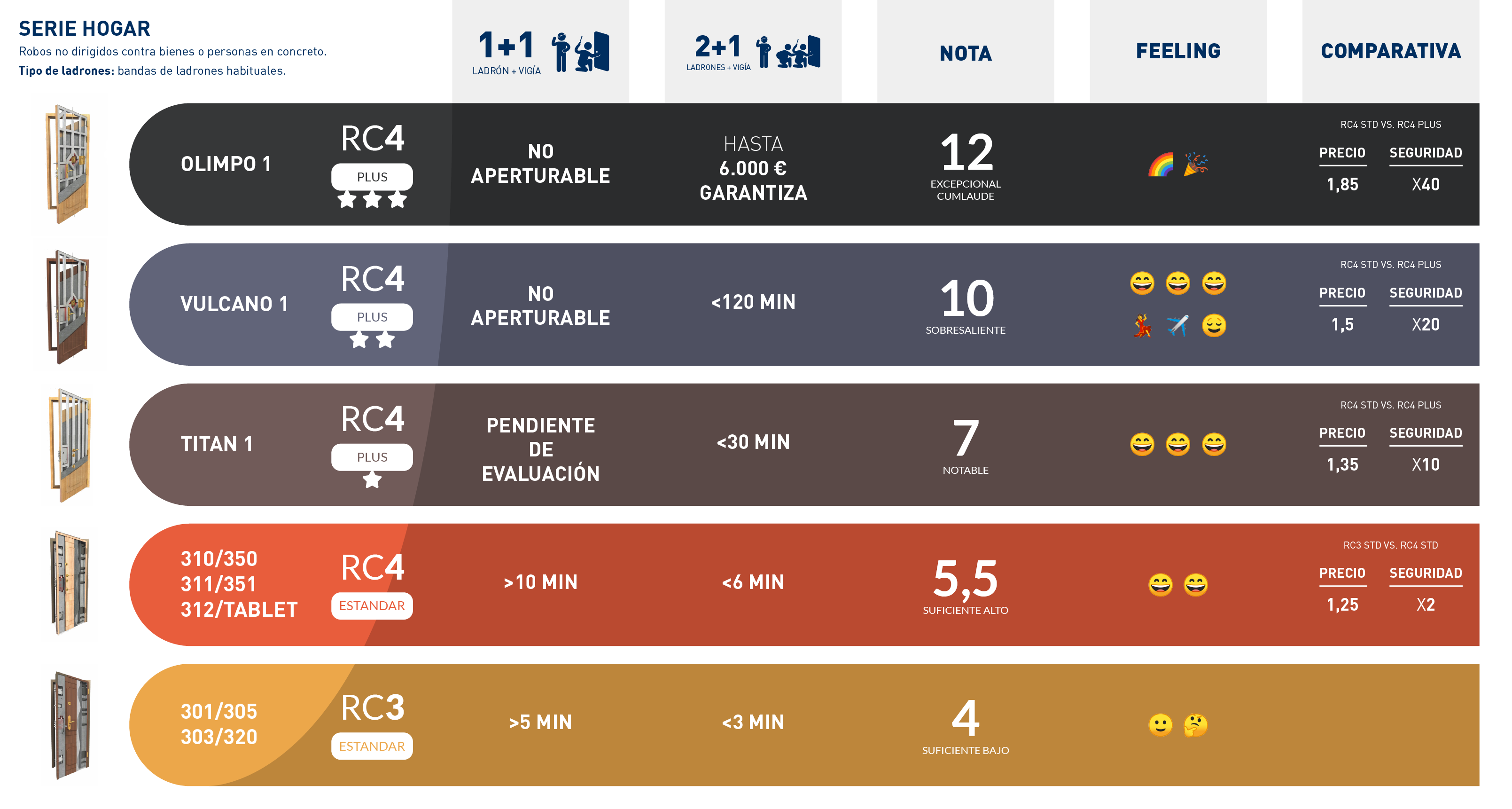 La valoración que hacemos está enfocada exclusivamente a robos domiciliarios en puertas de seguridad blindadas y acorazas centrándonos en la serie hogar y alto standing.