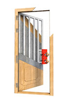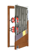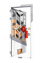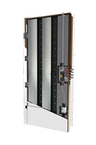 - Puerta con solape, tableros intercambiables, junta de estanqueidad, limitador de apertura y cortavientos automático
