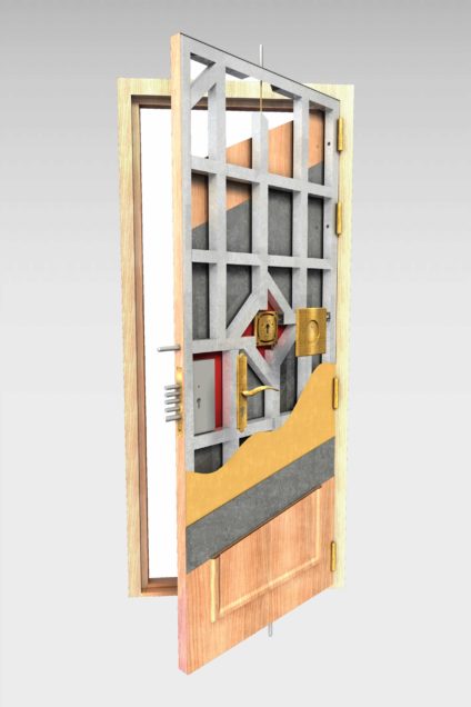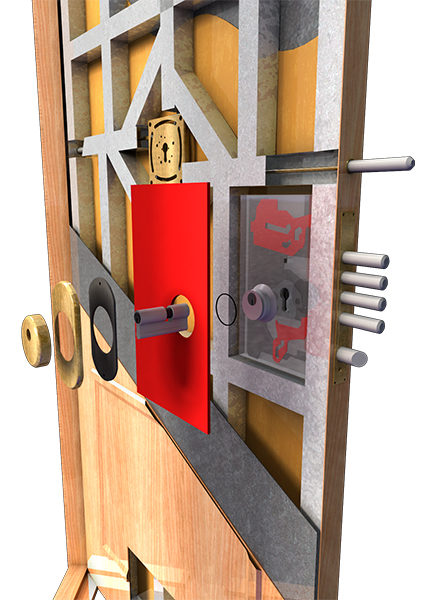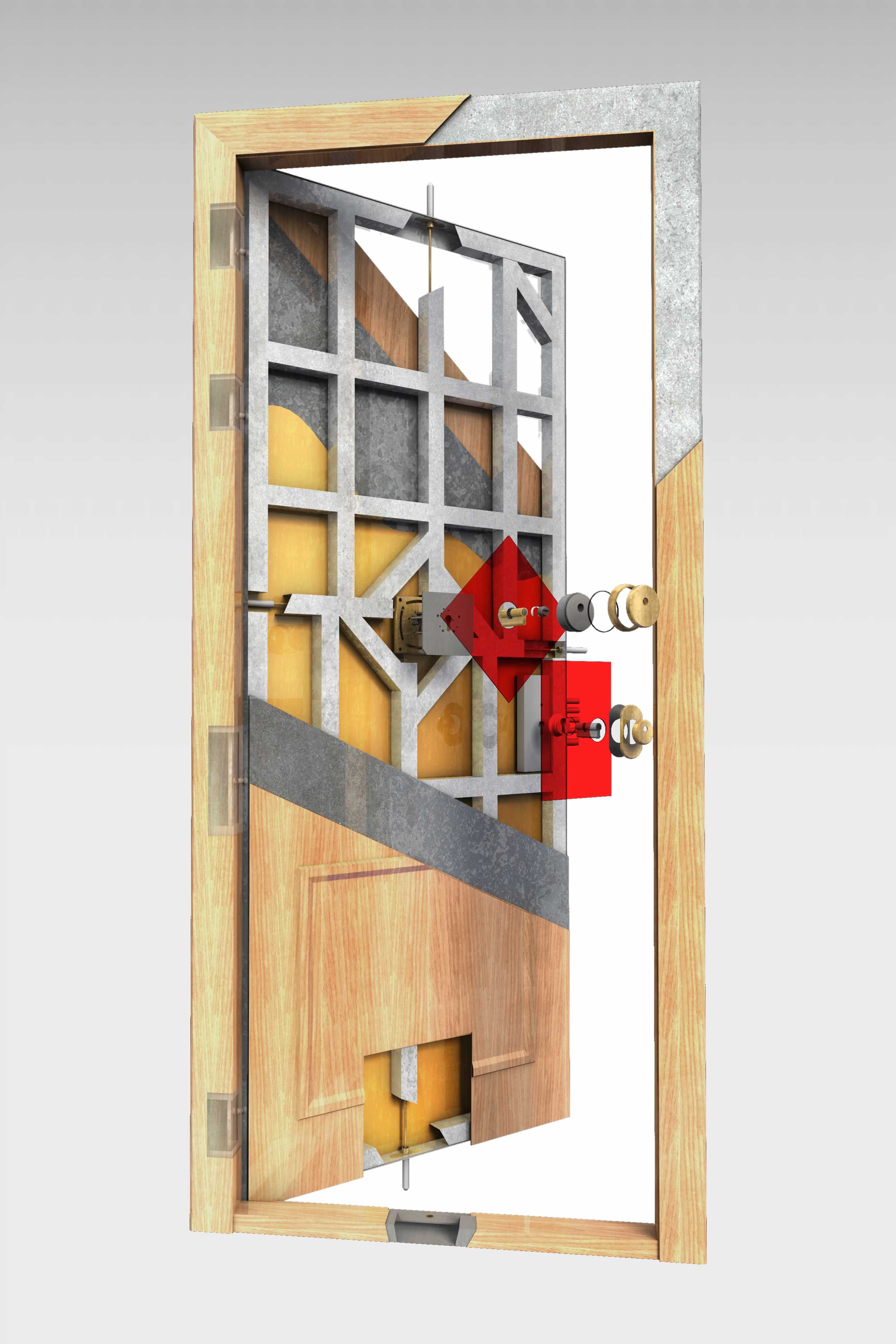 - Dos cerrojos con refuerzos especiales con materiales especiales que evitan su deformación y su corte.