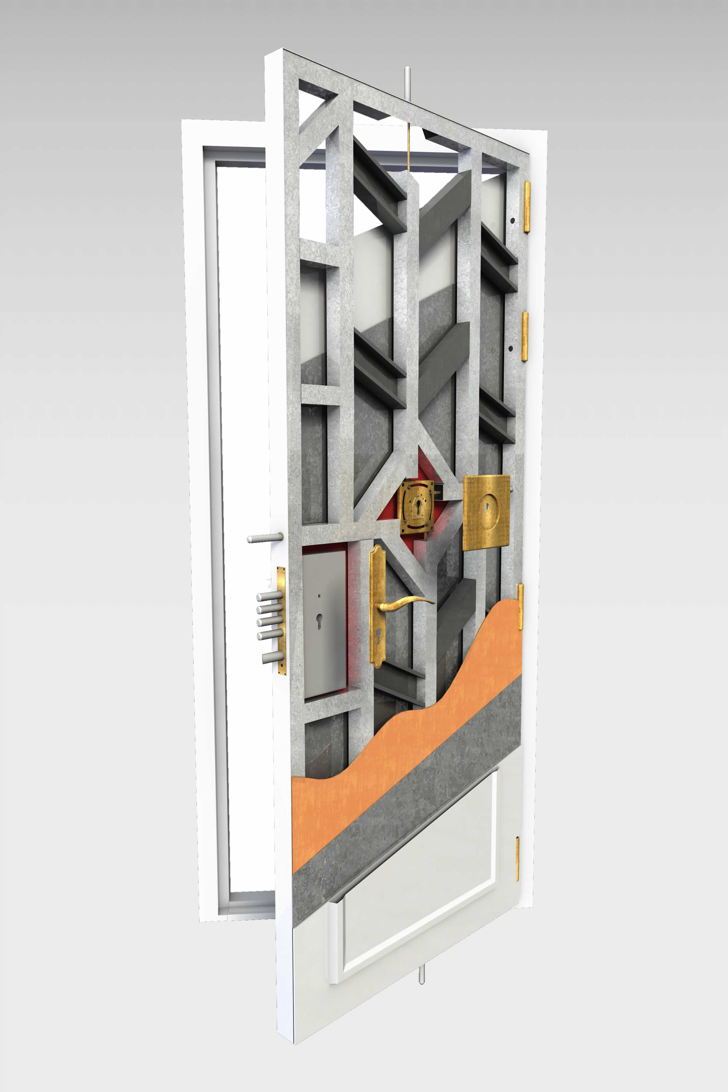 - Dos cerrojos con refuerzos especiales con materiales especiales que evitan su deformación y su corte.