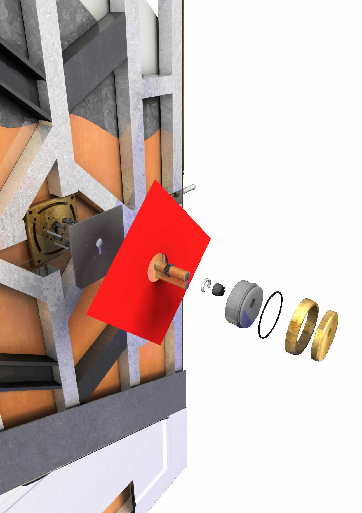 - Escudo abocardado, empotrado dentro de la puerta y con protecciones especiales soldadas a puerta de acero al manganeso
