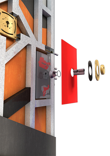 - Unido mediante 10 fijaciones especiales a puerta y a cerradura