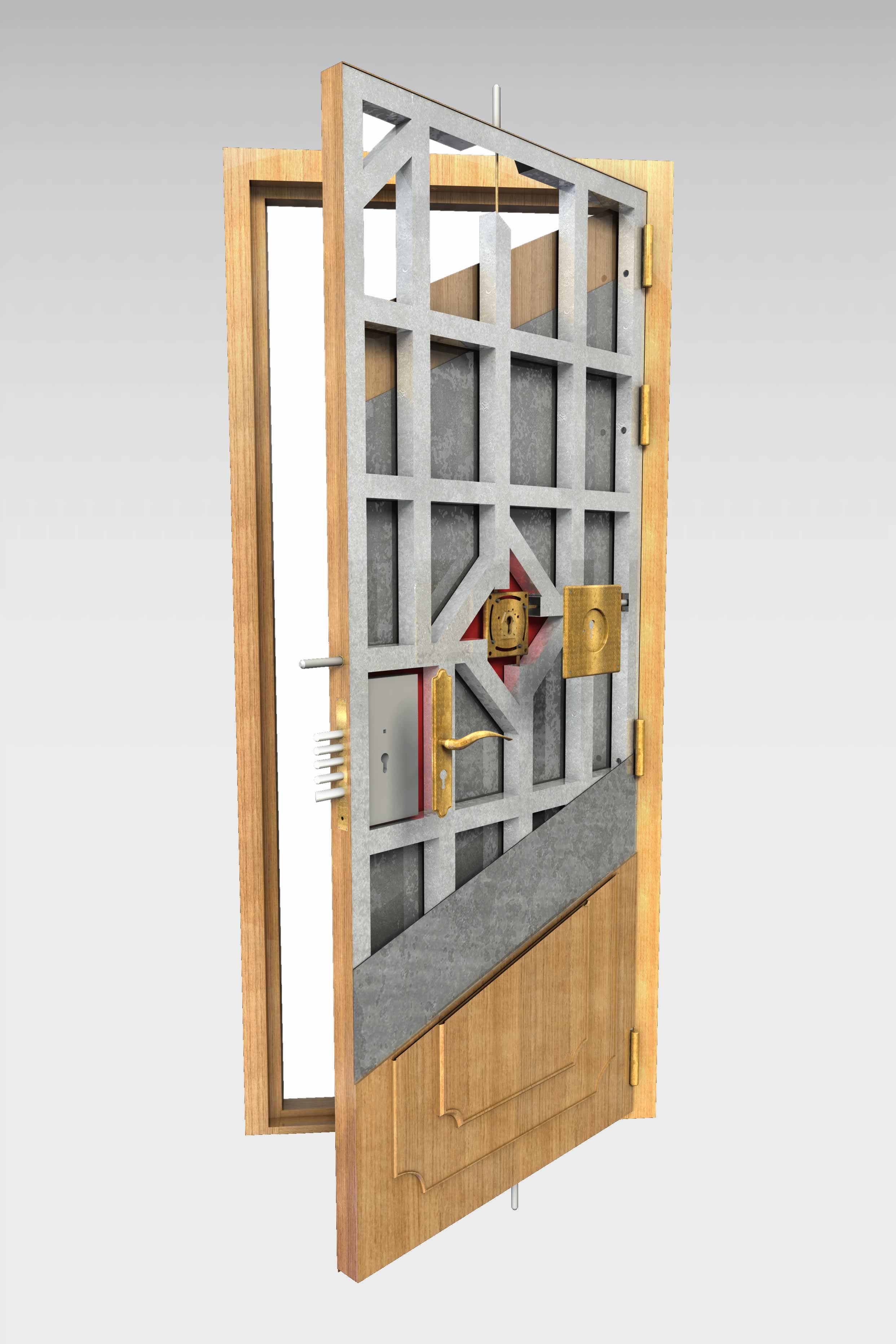 - Dos cerrojos con refuerzos especiales con materiales especiales que evitan su deformación y su corte.